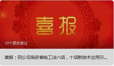 喜报:四公司荣获省级工法六项,十项新技术应用示范工程三项