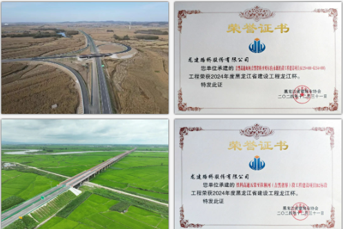 近日,黑龙江省建筑业协会发布了2024年度黑龙江省建设工程龙江杯工程评价名单,公司承建的吉黑高速山河(吉黑省界)至哈尔滨(永源镇)段工程、铁科高速五常至拉林河(吉黑省界)段工程建设项目B2标段等8个项目,喜获“龙江杯”奖项。