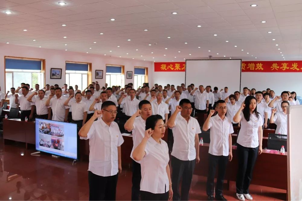 “我志愿加入中国共产党,拥护党的纲领......”,全体新党员在党委工作部部长崔世梅同志的带领下,握拳举起右手,面向党旗庄严宣誓,表达了全体党员坚定的入党信念和为共产主义事业奋斗终身的决心。
